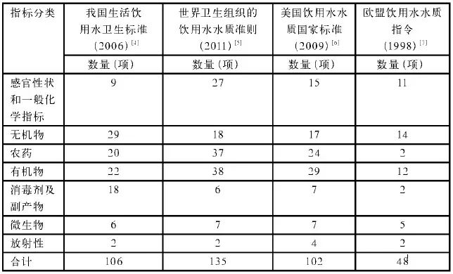 國(guó)內(nèi)外飲用水水質(zhì)標(biāo)準(zhǔn)的比較